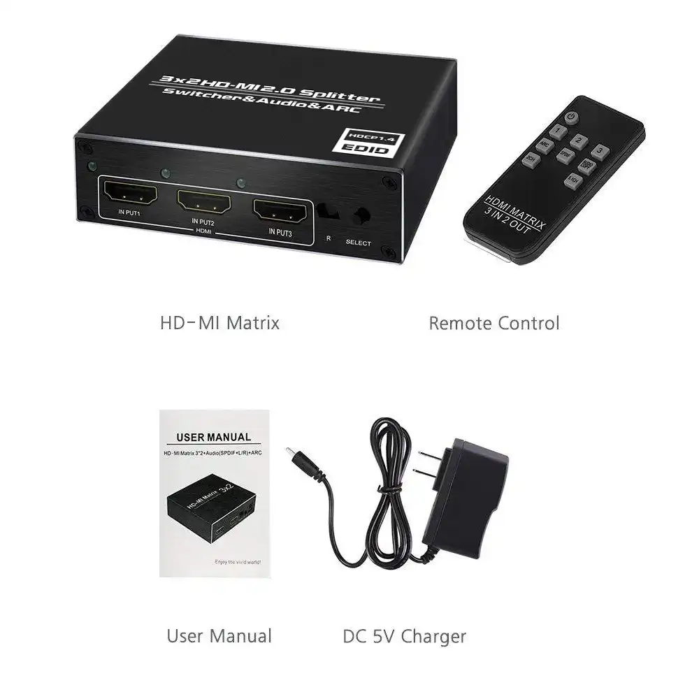 Kuwfi 4k Hd Mi Splitter 60hz Ultra Hd 3x2 Matrix Switcher Switch R L Arc 3 Ports Inputs 2 Port Outputs With Ir Remote Hdcp1 4 Hdmi Cables Aliexpress